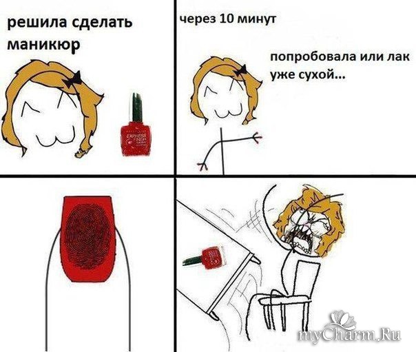 Или ещё хуже, когда красишь ногти на ночь, вроде бы просушила, ложишься спать, а утром та-дам!, красивый отпечаток постели на ваших ногтях, а перекрашивать просто нет времени.