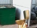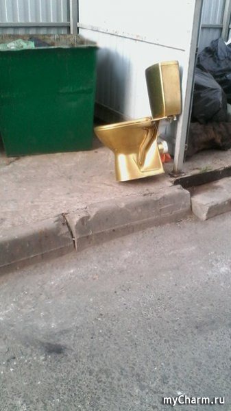 Многие пользователи и удивлялись курьёзности снимка. На фото можно заметить простой мусорный бак на Извилистой, а около него стоит никому не нужный "золотой" унитаз.