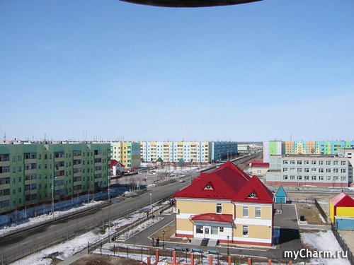 В Югре и жилые дома веселенько выглядят - особенно зимой.