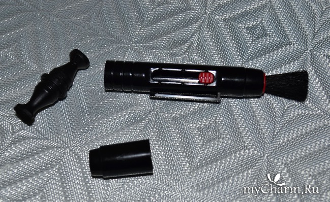 с другой - спонж ( или как назвать правильно..) для убирания залапываний и т. д.. ( сама то я пальцами в объектив не лезу, но иногда до фотоаппаратов и очков добирается ребенок...)