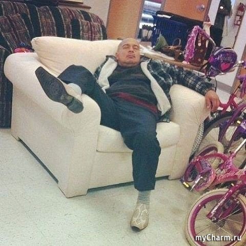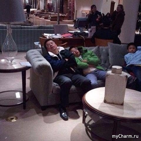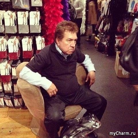 А-то у нас - наоборот: сам по любым (даже и продуктовым) магазинам ходит до-олго и нудно, что мне впору вот так вот присесть или прилечь, а как мне зайти куда мне надо: стоит над душой и торопит. Даже выбор толком сделать не даёт. Нет бы покурить пойти, или по своим делам...