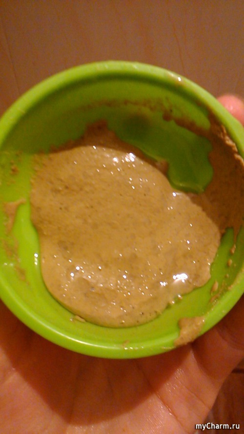 В этот раз жидковато получилось. но наносится хорошо. Сама маска пахнет мятными леденцами, запаха глины нет совсем.