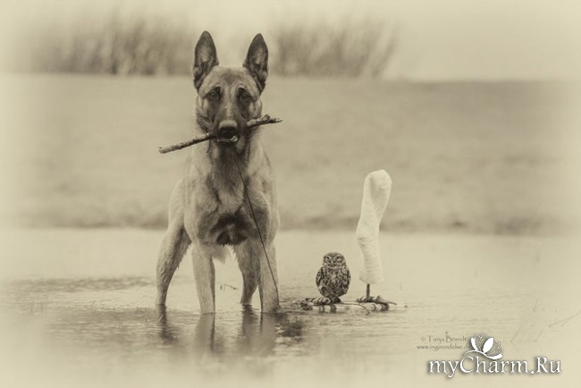 Пока не увидишь эти снимки овчарки Инго и совы Польди от Тани Брандт, профессионального фотографа из Германии. Попробуй заставь так позировать животных, если они не чувствуют себя уютно и гармонично друг с другом.