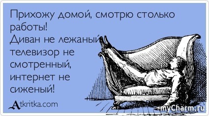По холодильнику: возле меня стоит на работе холодильник, ну что там может лежать - соусы залежавшиеся и маринованные огурцы от праздника оставшиеся, так вот сотрудник со мной работающий по 2 раза в день откроет его и смо-о-отрит, а потом берёт свою минералку и уходит. Так и хочется каждый раз сказать "чего-то забыли?". Ну вот чего ты стоишь и смотришь, ты чего-нибудь туда клал, чтобы искать