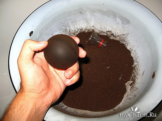 За это время влага, выделившаяся из шара, осядет конденсатом на стенках пакета. Аккуратно достаем шар, присыпаем сухим грунтом и растираем его.