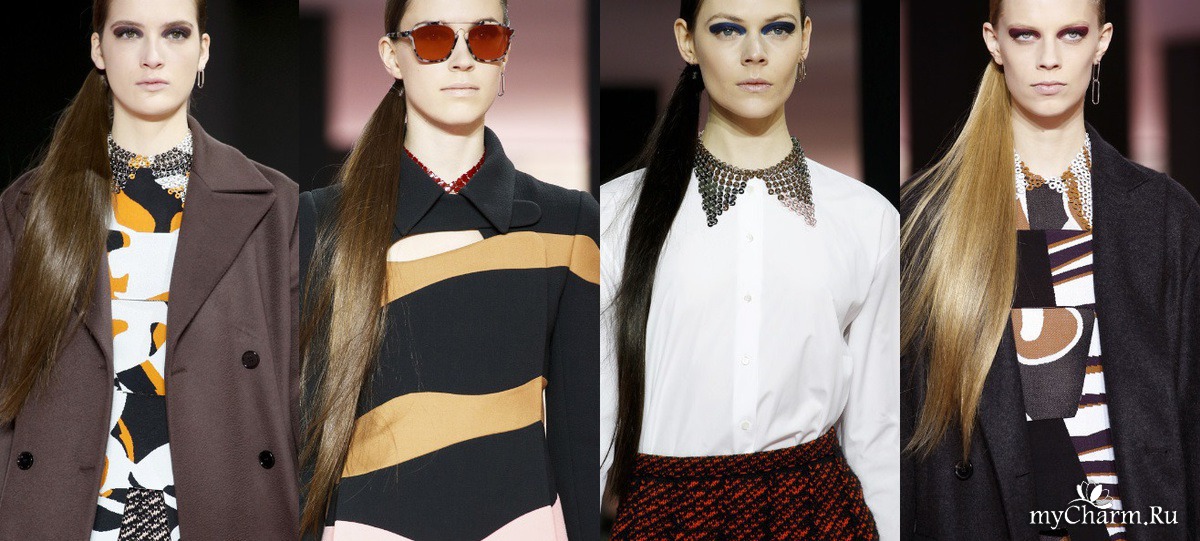 Раф Симонс предлагает по-новому взглянуть на повседневные украшения: воротники из осенне-зимней коллекции можно носить даже под одеждой, а подбирать их следует в тон принта платьев и пальто.