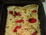 Взять лист лаваша, смочить полностью в кефире, немного отжать и выложить в форму для запекания.