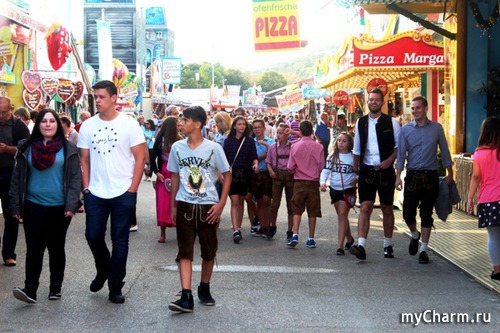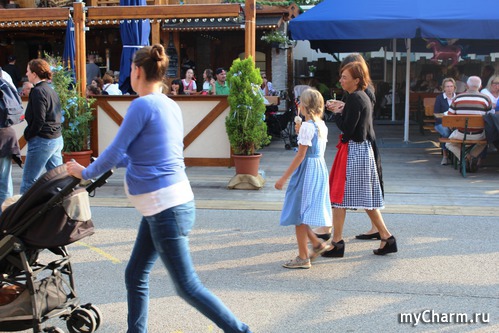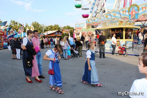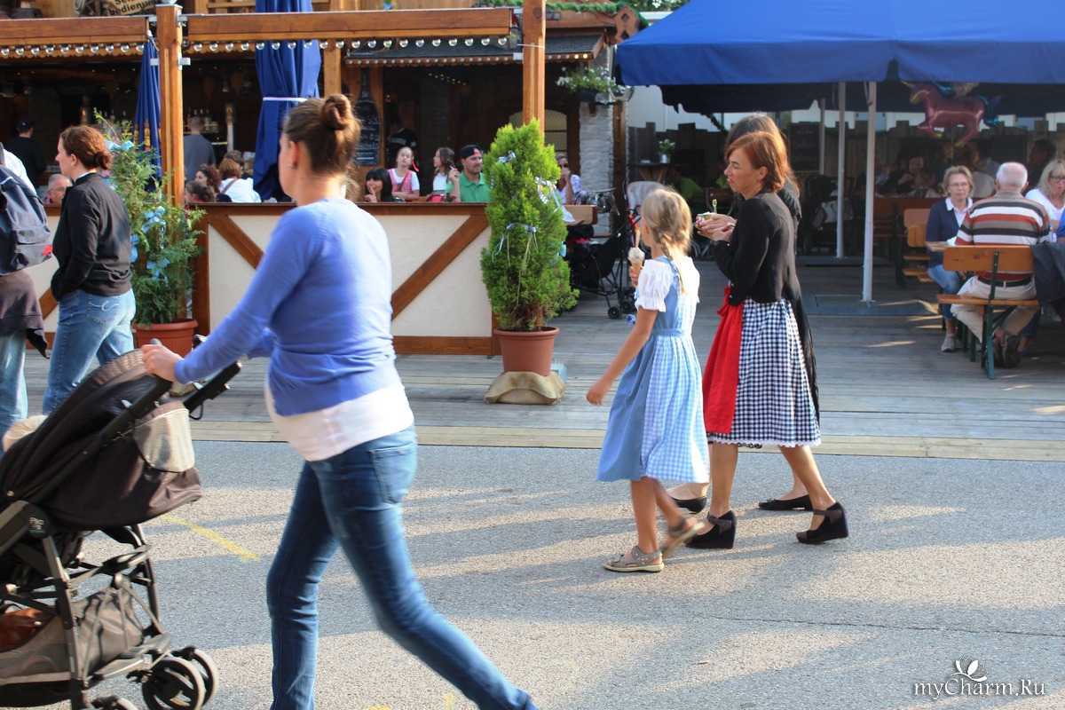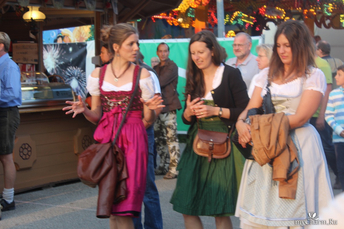Но ярмарка необычная - два раза в год, как большое событие - на нее идут и стар и млад - кто за общением за кружкой пива с колбасками или сосисками, кто на чашечку кофе со свежайшей выпечкой, кто себя показать и других посмотреть. Для взрослых это еще и возможность выгулять свои баварские наряды – а они очень красивы, есть что показать, хотя и дети тоже щеголяют в традиционных костюмах. И поверьте, стоят такие платья, шорты, шапочки с перьями весьма не дешево! И возраст здесь не при чем – в традиционной одежде от мала до велика! Одним словом - событие!!!