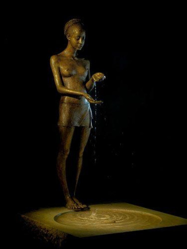 Скульптор Малгожата Ходаковская (Malgorzata Chodakowska) из Польши создает невероятные фонтаны, в которых бронза и вода дополняют друг друга. Изначально она вырезает скульптуры из дубовых стволов. Когда она только начинает, тяжело себе представить, как из огромного бревна может родиться утонченная женская фигура. Но Малгожата снимает лишнее, слой за слоем — и вот перед зрителем оказывается ее очередной шедевр.
