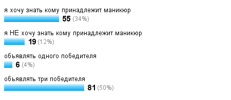 1. Как вы смотрите на то, чтобы после голосования сдавать пароли и явки, т. е. объявить за чьи маникюры вы голосовали? Фактически я спрашиваю интересно ли вам узнать всё-таки кому принадлежит тот или иной маникюр?