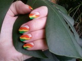 Идея не моя. Нашла фото с таким маникюр на другом ресурсе в подобной теме, но там он был выполнен в розово-сиреневых тонах. Тоже очень красиво было. Но мне захотелось ярких красок.
