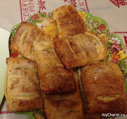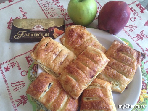 По такому же принципу можно сделать слойки с любой, начинкой и сладкой в том числе. Только желательно чтобы она не была слишком мокрой и текучей.
