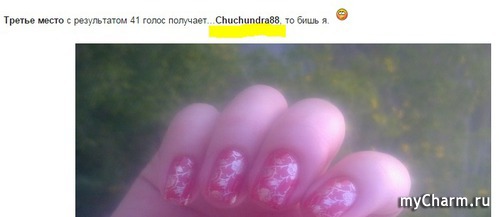 Мне многие маникюрчики из прошлой темы понравились, все разные, очень много достойных, я сильно удивилась, когда увидела, что за меня так много голосов, еще раз всем спасибо!