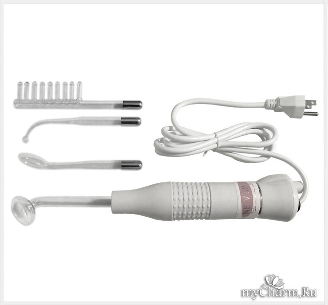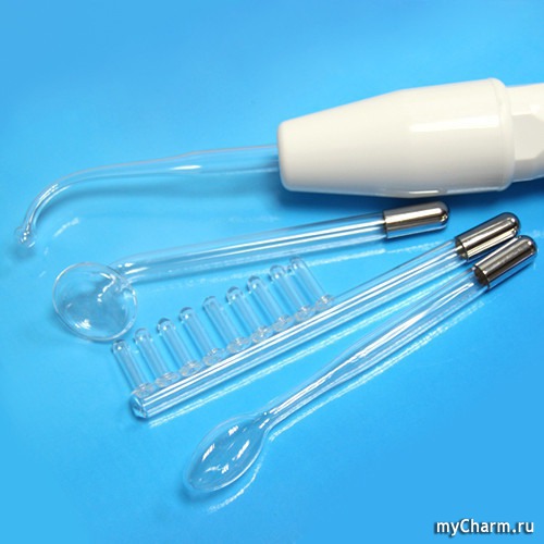 Высокочастотные процедуры эффективно убивают бактерии и уменьшают воспаление. Это делает их эффективными для борьбы с акне. Другое полезное действие электрического тока на кожу в стимуляции производства коллагена, что позволяет использовать его для анти-age процедур, повышающих упругость и молодость кожи.Сам по себе гаджет выглядит как небольшие стеклянные колбы с утолщениями на концах. Эти наконечники вставляются в устройство, которое собственно и производит ток. Колбы выполняют роль электродов, они выделяют аргон (газ, который положительно воздействует на кожу) и проводят электрический ток на кожу.