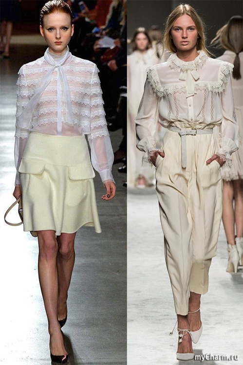 Для деловых, но романтичных женщин дизайнеры предлагают блузы с жабо.