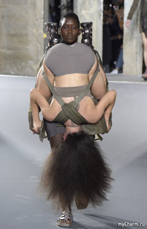 Американский дизайнер Рик Оуэн стал гвоздем Недели высокой моды в Париже, когда вывел на подиум моделей, одетых в утилитарный стиль. Причем девушки носили конскую упряжь, а некоторые модели вообще тащили на себе других манекенщиц, причем вверх головой и в весьма неудобных позах.