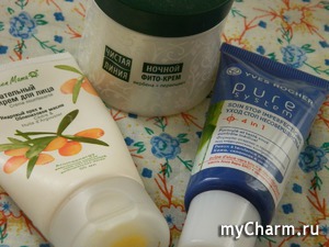 Крем для лица, шеи и декольте (дневной - от Ив Роше, ночной - от Чистой линии, для шеи - от Грин мамы).
