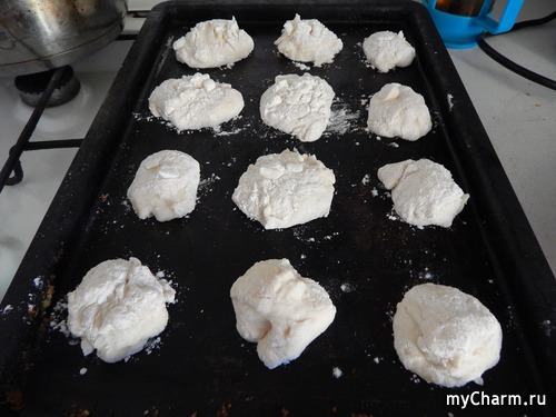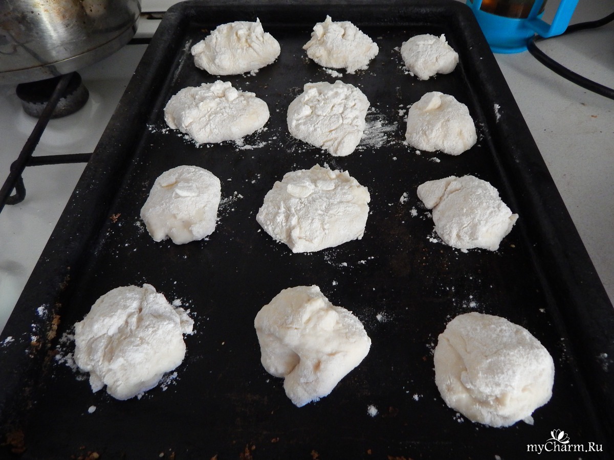 Потом делим тесто на шарики и выпекаем в духовке на смазанном маслом листе до готовности.