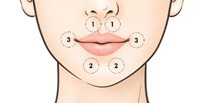Используйте крем каждый день утром и вечером. Возьмите небольшое количество крема и легкими движениями распределите по коже губ и области вокруг губ. Сделайте легкий массаж трех зон, отмеченных в порядке воздействия на рисунке, путем надавливания подушечками средних пальцев рук (техника Шиацу): сначала промассируйте точки над верхней губой, затем спуститесь к точкам под нижней губой и в завершении слегка надавите на уголки губ.
