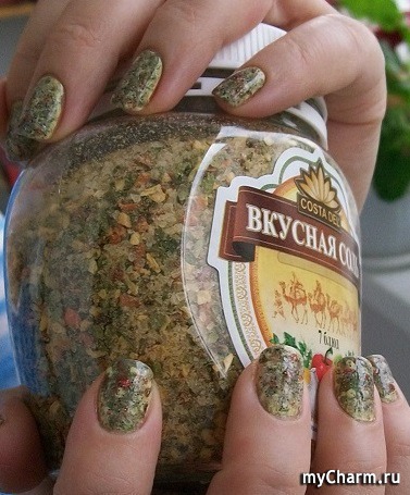 Ну и на последок (контрольным выстелом) нанесла топ "Соль и перец")) Сами понимаете, я просто не могла не добавить этот топ к этому маникюру