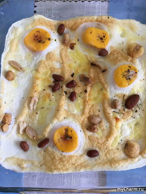 Взять 5-6 яиц. Отделить белки от желтков. Белки подсолить по вкусу, хорошо взбить - до густой пены. Смазать форму для запекания растопленным сливочным маслом. Аккуратно выложить в неё белки. Сверху на них осторожно разложить желточки (в моём случае, 3 желтка, как назло, растеклись, поэтому фото сырого продукта я не сделала). Подсолить желтки по вкусу (аккуратно- не пересолите!)... Читать полностью |
