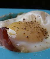 Поставить в разогретую до 200 гр. духовку на 5-10 минут (в зависимости от духовки и желаемой степени запекания желтков).