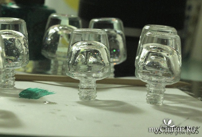 Потом потом высушить флаконы, перевернув их кверху дном, чтобы лак не стекал на дно.