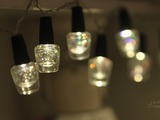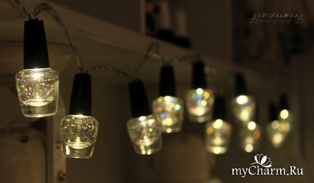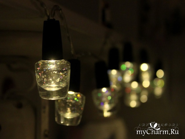В одном зарубежном блоге увидела вот такую забавную идею, как сделать новогоднюю гирлянду из пустых лаковых флаконов.