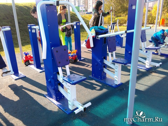 Вот такая вот площадка. Народ там есть всегда. В теплые деньки я и сама сюда ходила каждый день. А сейчас в теплых куртках не особо позанимаешься. Ну ничего, придет лето и я снова буду мучить тренажеры.