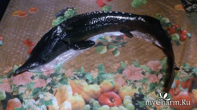 Вечером сынуля поздравил меня и повез в окей. Мы купили продукты и свежую стерлядь. Я решила запечь ее в духовке в 23 часа, потому что утром мне надо было еще печь пиццу, готовить филе индейки, салаты и маффины.