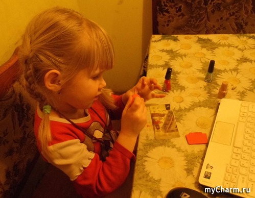 и ещё забыла сказать, когда оставишь открытый пузырёк, лак нужно будет периодически перемешивать кисточкой, а то он сверху возьмётся плёнкой