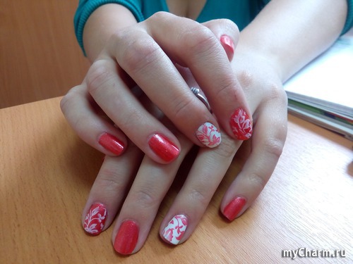Не всегда у меня получалось сделать все идеально с первого раза, потому что резиновая подушечка все-таки не настолько мягкая, чтобы лёгким прикосновением можно было бы перенести рисунок на ноготь, особенно длинный. А я, как вы знаете люблю носить длинные ногти.