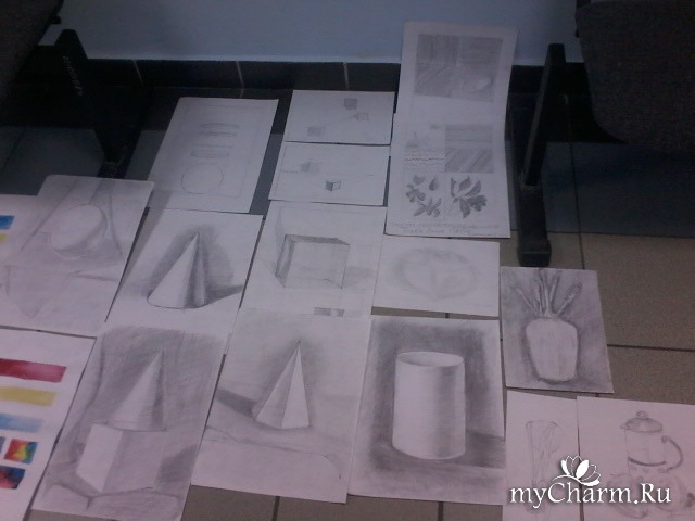 Последним экзаменом был просмотр рисунков по карандашу и живописи. Всех просто трясло, как всё пройдёт, как комиссия оценит работы! Но, поскольку мы всё же начинающие художники, к нам, по всей видимости, было снисхождение. Иначе как объяснить, что мне, дилетанту, поставили 4 по обоим дисциплинам.)))Показываю, не хвастаюсь, пока потому что нечем,)