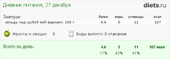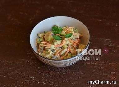 Мы любим этот салатик в виде рулета, немного добавляем желатин. Рецепт вы и без меня знаете, так что вот вам калораж оргинала: