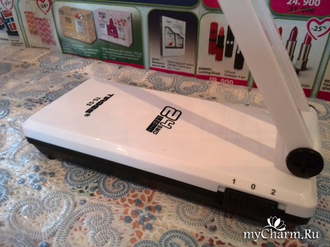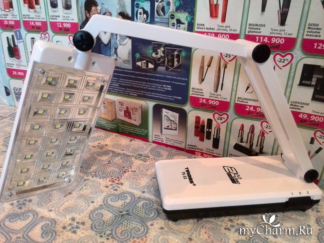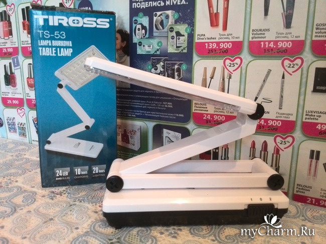 Это настольная лампа. Взяла ее специально для маникюра. Потому, как часто делаю маникюр вечером, всегда сижу в темноте. Освещения комнатного не хватает. Вот и решила себя побаловать. Да и для клиентов будет удобно.