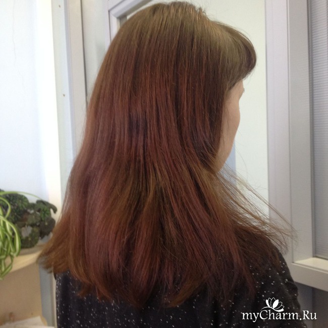 Естественно после этого мое «творчество» мастер закрасил и цвет теперь более-менее меня устраивает, а еще пришлось отстричь 5-7 см, т. к. волосы стали сухие и секутся. Я с этим буду активно бороться, т. к. обещала мужу отрастить волосы (ну не нравятся ему девушки с короткими волосами).