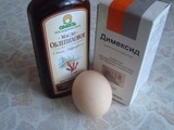 Масло разогрейте, добавьте Димексид, нанесите на волосы, хорошо массируя корни и кожу головы.