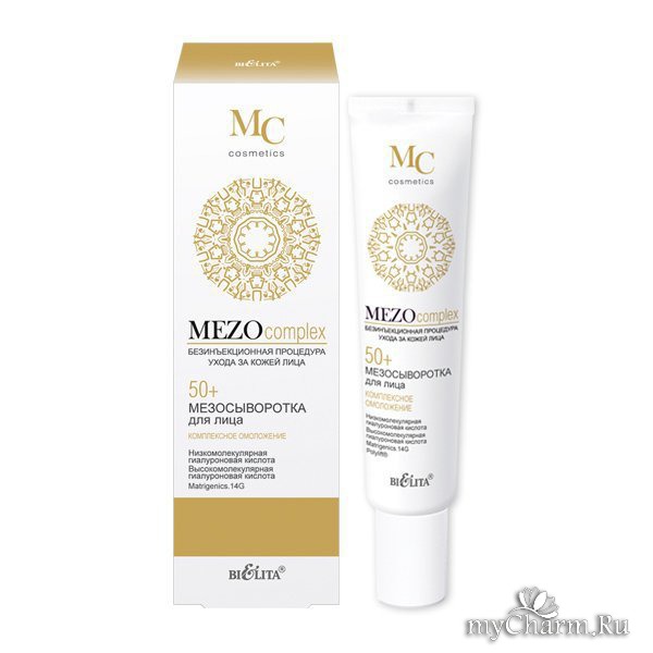 Косметика Mezocomplex 50+ направлена в первую очередь на восстановление «треугольника красоты» (разглаживание морщин и линий на лбу, носогубных складок) и активизацию генов, участвующих в синтезе гиалуроновой кислоты, коллагена и эластина.