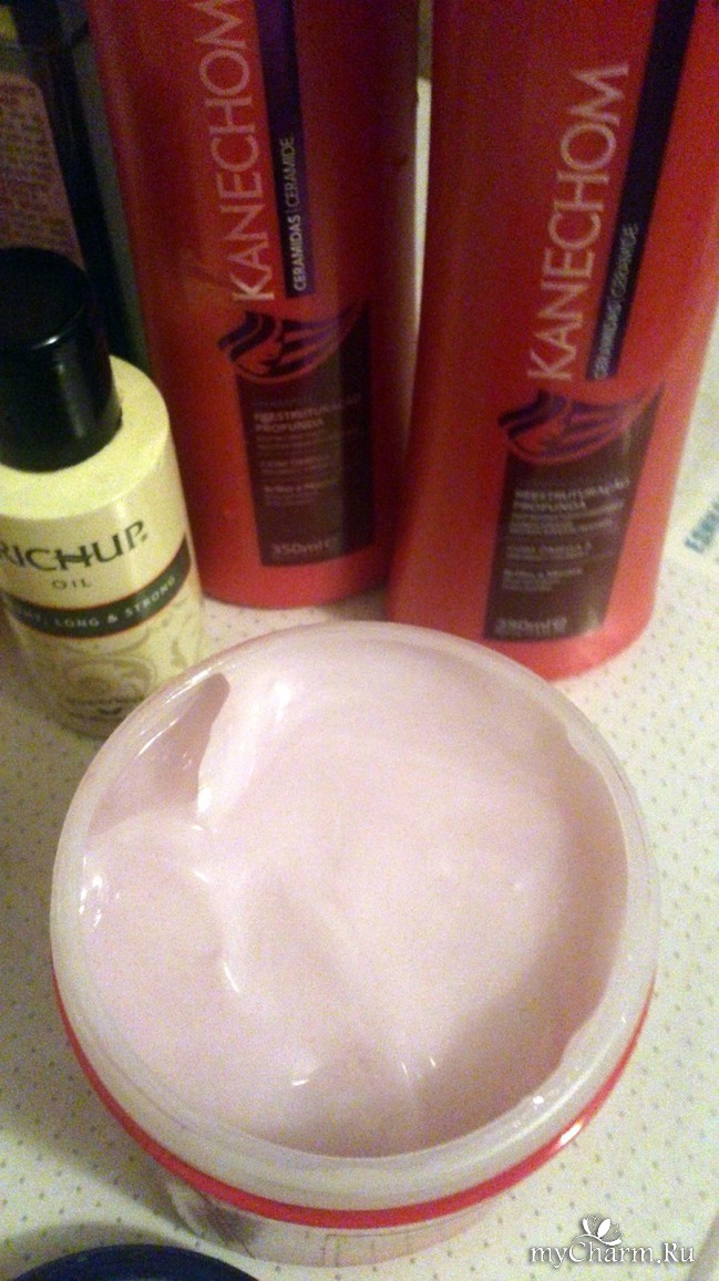 Сделала массаж с кокосовым маслом+ масло тричуп, оставила на 3 часа. Смыла шампунем KANECHOM.