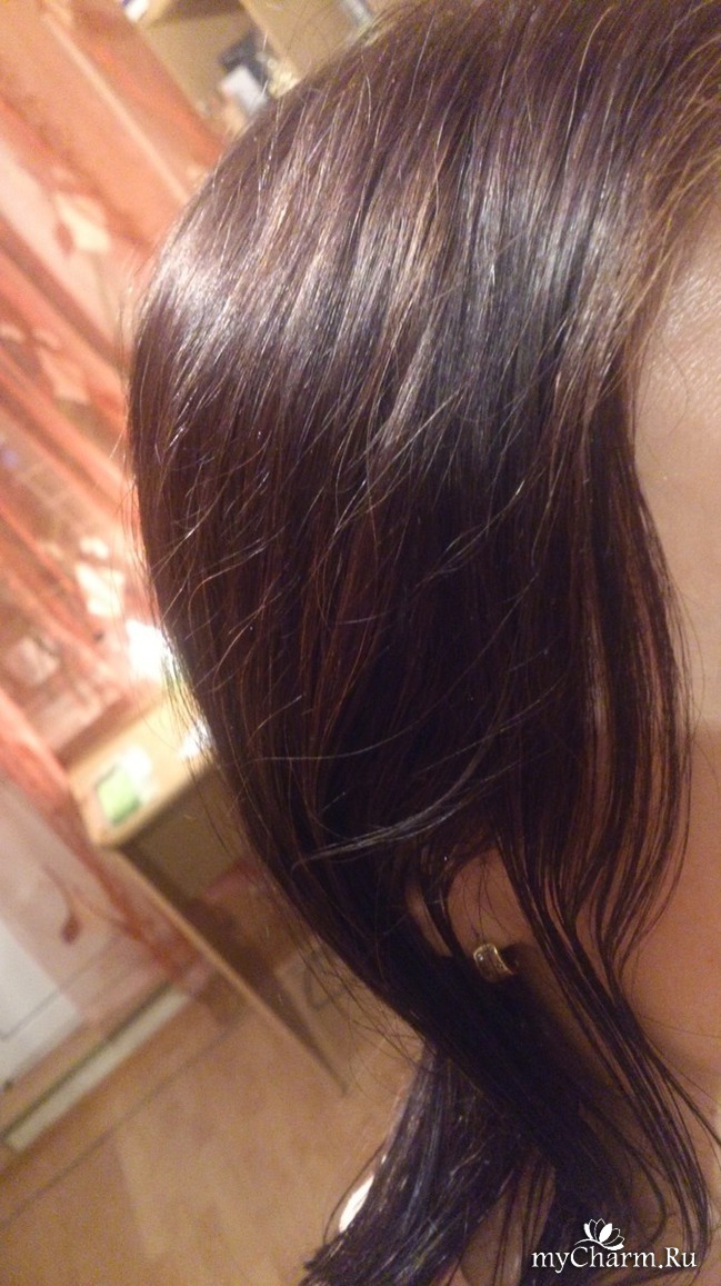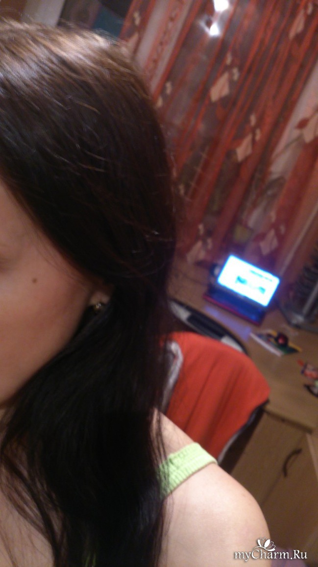 Нанесла кокосовое масло на кончики, масло тричуп по всей длине и втерла в корни. Ходила 5 часов дома.