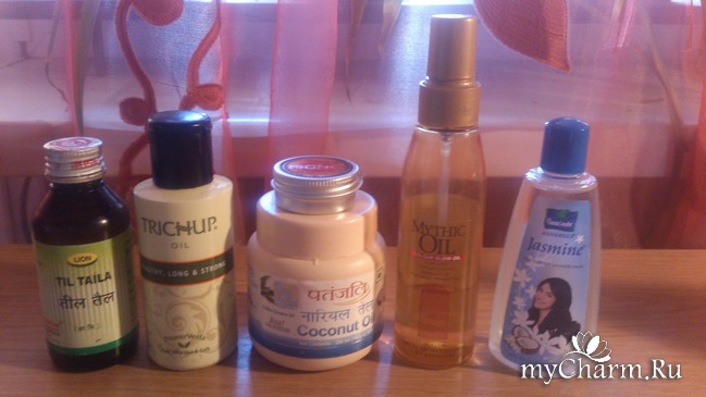 Масла из Индии /кокосовое, кокосовое с жасмином, тричуп, кунжутное/, твердое масло от ДНС, лореаль для окрашенных волос.