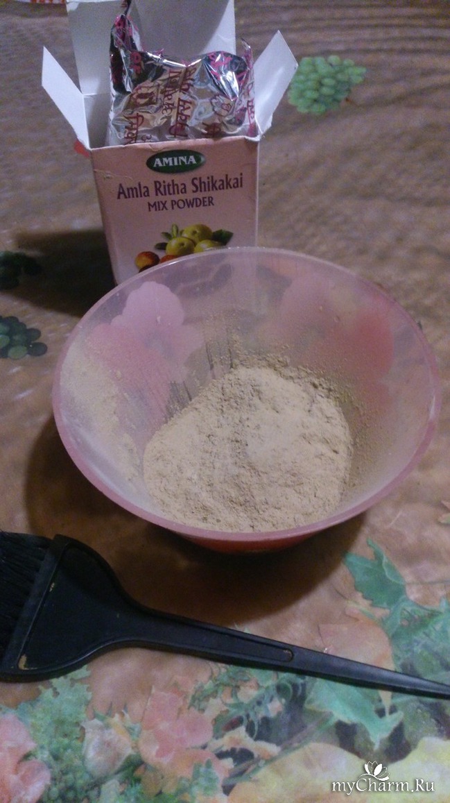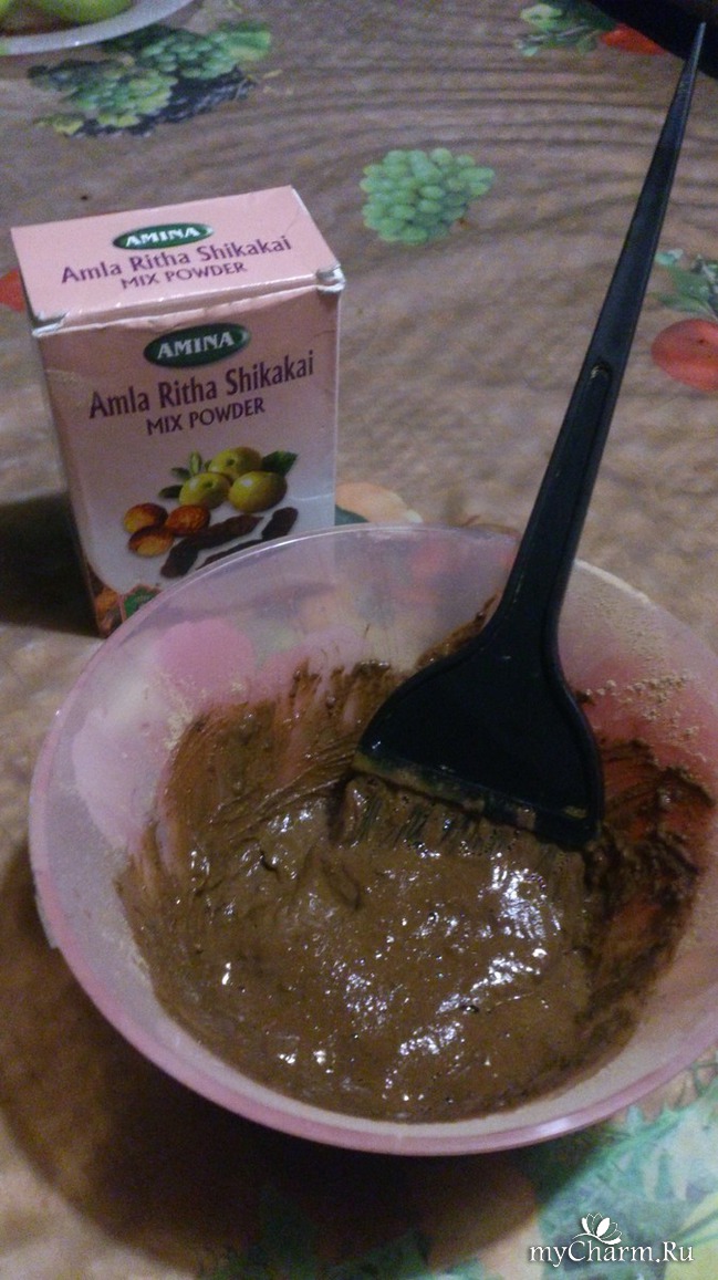 На масляные волосы нанесла индийскую маску с амлой и орешками шикакай. Надела шапочку для душа, сверху вязанную шапочку. На 30 минут.