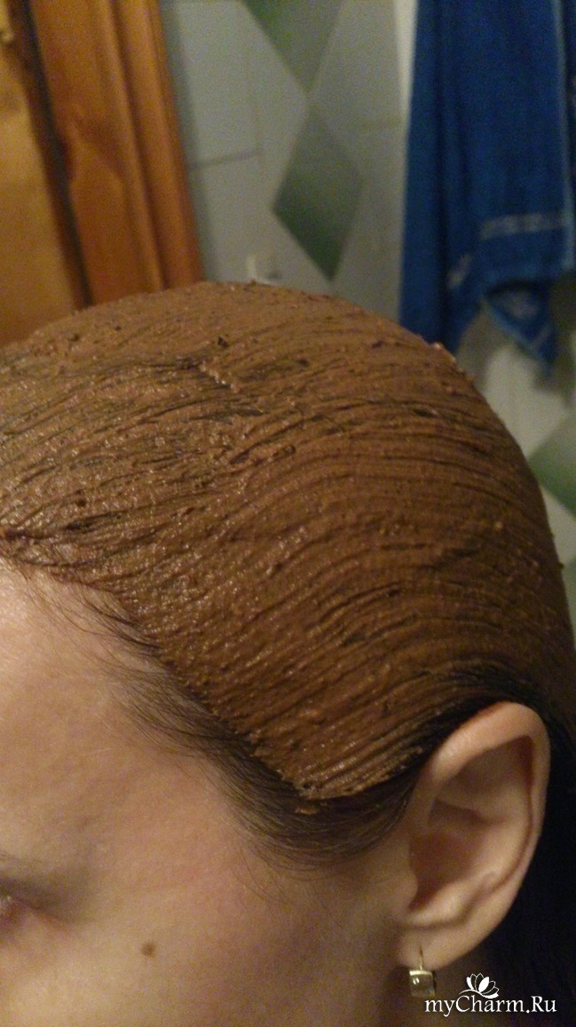 Сделала соляной скраб, помыла голову шампунем. Сделала маску на 1.5 часа, под теплой шапочкой. Смыла чистой водой.