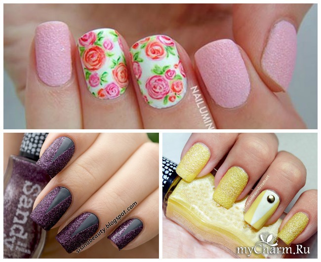 Так вот вам нужно будет сделать маникюр с использованием разных текстур одновременно, т. е. смиксовать их.