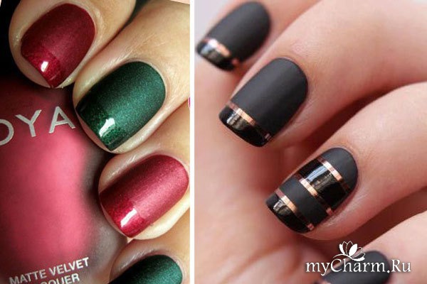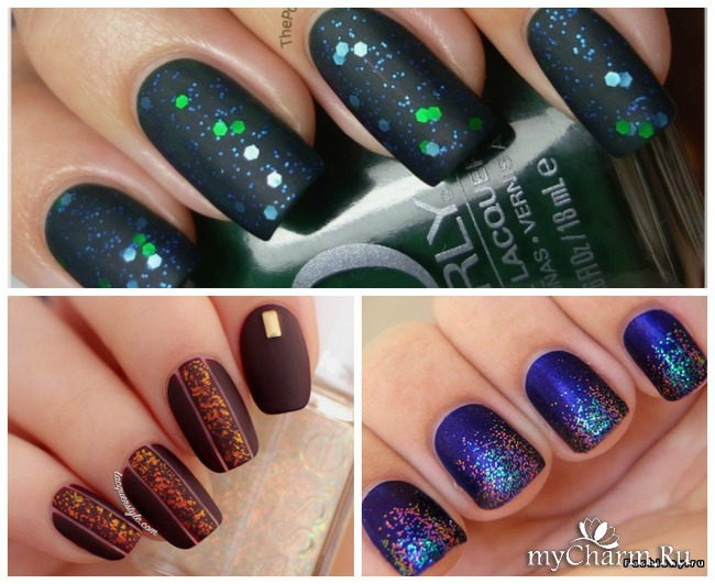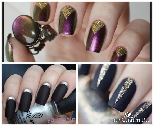 А можно соединить металлики и шиммерные лаки с матовой текстурой или хамелеонами.