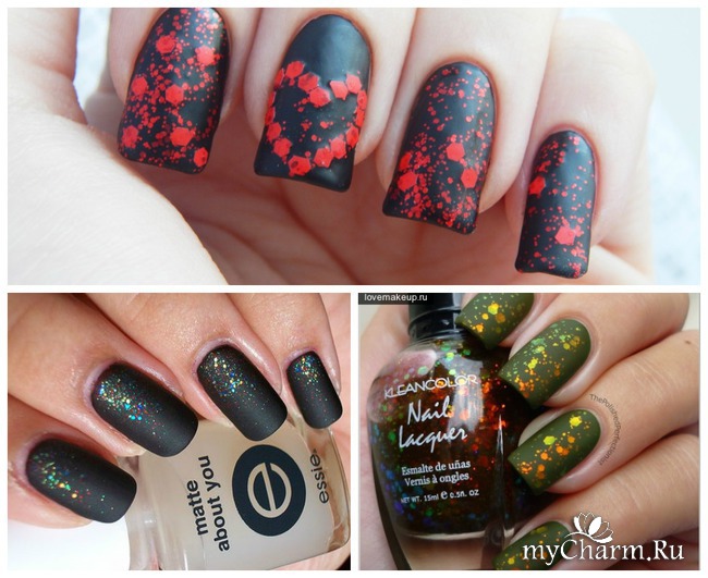 А вы знали что глиттерные и лаки со слюдой тоже покрывают матовым топом? Получаются очень интересные покрытия.