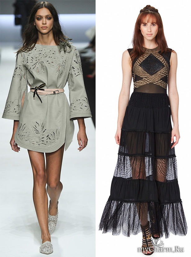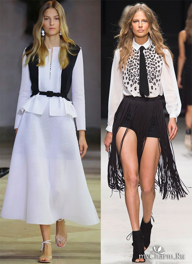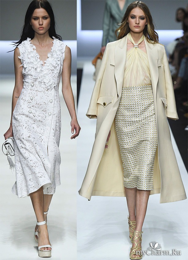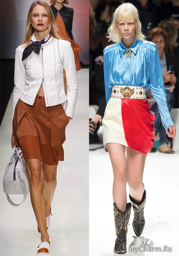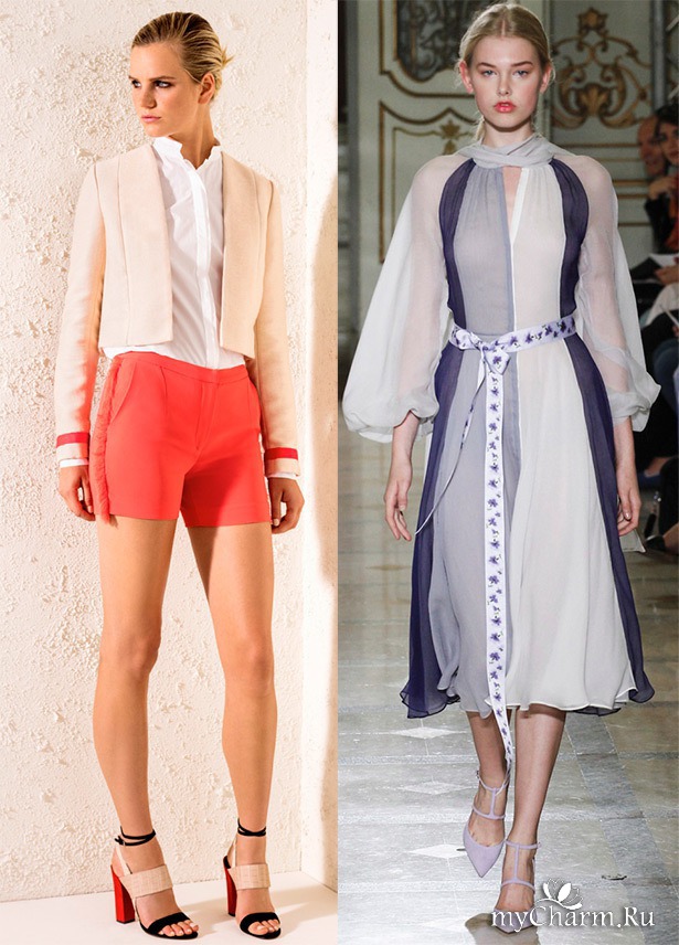 Многие коллекции выстроены на сочетании разных оттенков, яркие цвета олицетворяют свежесть весны. Цветовая гамма основана на оптимизме, свободе и фантазии.