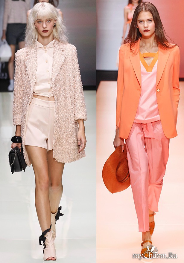 В коллекциях Emporio Armani и Giorgio Armani ощущается весеннее настроение с жизнерадостной и изысканно элегантной палитрой пастельных оттенков.