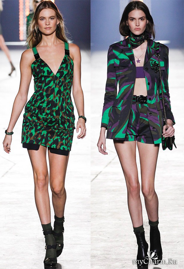 Зелёный цвет – от тёмно-зелёного до сияющего зелёного. Эта цветовая гамма встречается во многих коллекциях. Особенно тщательно её проигрывают Versace, Gucci. Зелёный в этих коллекциях дышит свежестью молодой листвы и травы.