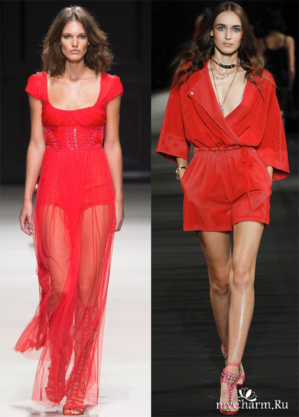 Актуальны красные тона. Но разве бывает сезон, в котором красный остаётся в тени и никак не проявляет себя. Красные представлены яркими ягодно-фруктовыми тонами - от тёмно-бордового до светло-красного, а также красный с многочисленными коралловыми оттенками.